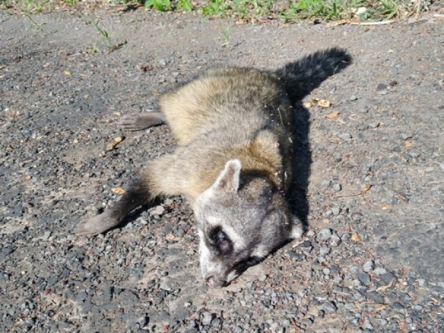 Um mão-pelada (Procyon cancrivorus) foi encontrado morto pelo seguidor do Guia Crissiumal Gilmar de Souza, que fotografou o animal.