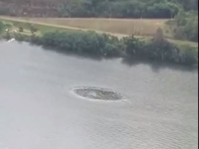 Uma cena chamou a atenção de turistas que passavam pelo rio Uruguai, próximo ao porto do Goio-Ên, em Chapecó, no Oeste de Santa Catarina. Um círculo se formou no leito do lago e foi filmado por essas pessoas.