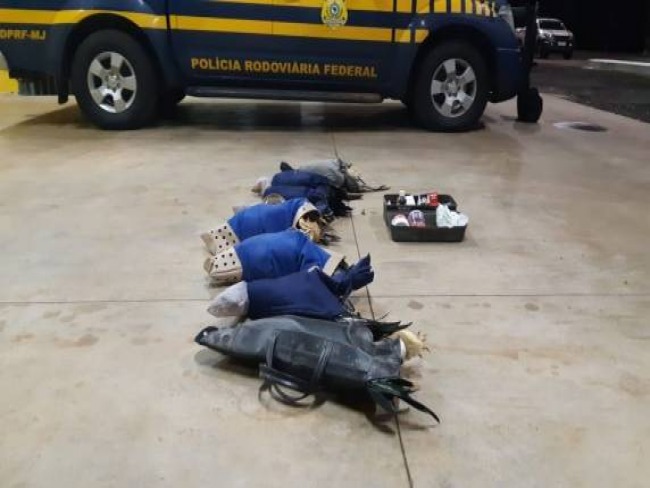 veículo, encontraram sete aves embaixo dos bancos do motorista e do