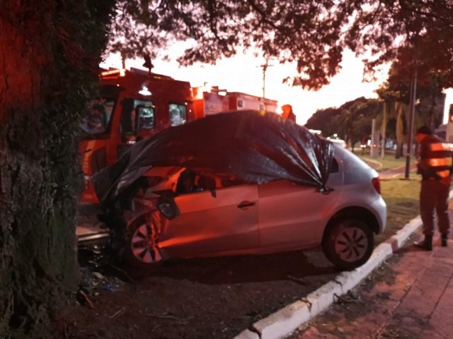 Um Volkswagen Gol, 2015, cor prata trafegava no sentido Centro/Boqueirão, quando, por motivos que serão investigados, subiu no canteiro central e colidiu contra uma árvore. O fato aconteceu próximo do Mercado Marcolan.