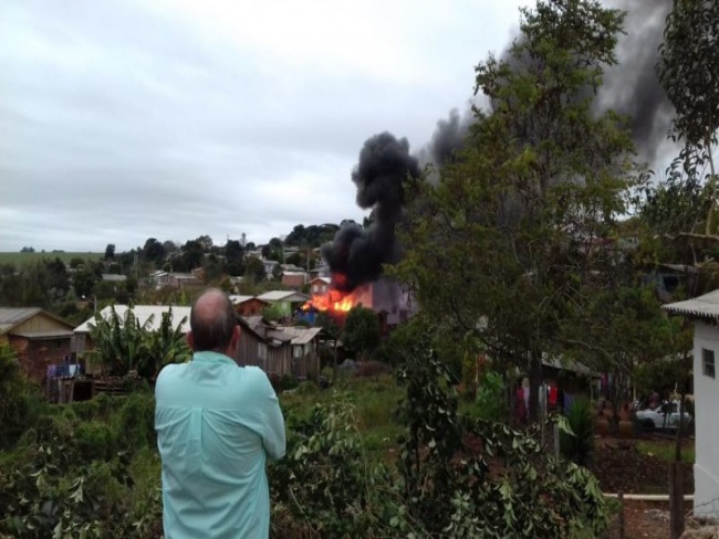 Três pessoas ficaram feridas durante um incêndio em uma casa de madeira no bairro Franco I em Palmeira das Missões.
