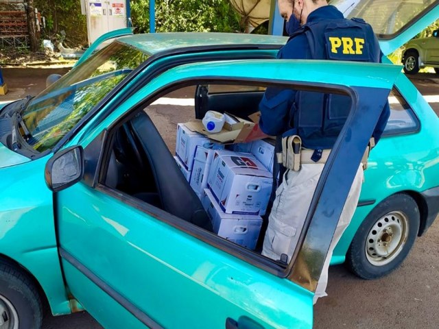 Na tarde desta domingo (21), na BR 386 em Sarandi, a Polícia Rodoviária Federal prendeu um casal e aprendeu 260 litros de agrotóxicos contrabandeados da Argentina, que estavam sendo transportados num Gol.