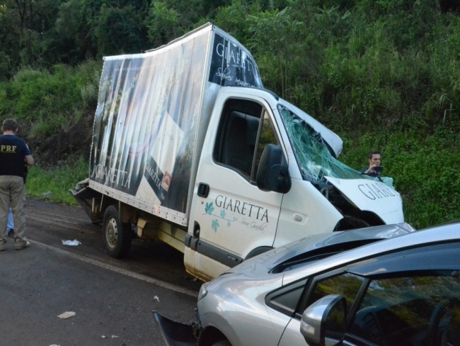 Na tarde de quinta feira(22), por volta de 17:00h, um violento acidente na BR 386/km 145, entrada da Lª Rio Bonito, um veículo de transportes de uma vinícola (fazia sentido Carazinho/Sarandi) realizou uma ultrapassagem em uma curva em faixa dupla, vindo a chocar-se com um caminhão da Transportadora Waldemar, após chocar-se em um veículo Honda placas de Sarandi e outro veículo Honda de placas da cidade de São Marcos o qual foi atingido na traseira por outro caminhão de carga.