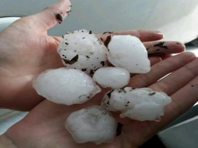 Além dos raios que inclusive foram motivo do incêndio de uma residência em Santa Lúcia no interior de Nova Candelária durante a quarta-feira (14), a queda de granizo de grande porte foi registrada em Bela Vista e localidades vizinhas, no interior de Crissiumal.