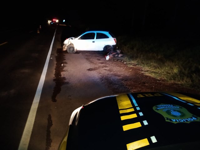 O condutor da moto, de 54 anos, morreu no local. A condutora do carro sofreu lesões e foi encaminhada ao Hospital de Irai.