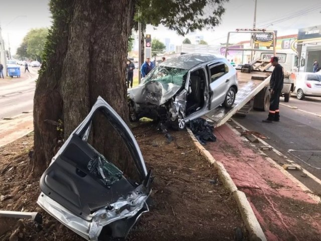 Um Volkswagen Gol, 2015, cor prata trafegava no sentido Centro/Boqueirão, quando, por motivos que serão investigados, subiu no canteiro central e colidiu contra uma árvore.