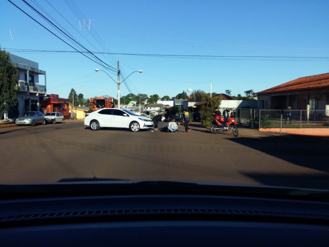 Por volta das 16 horas desta quinta-feira (07/06) ocorreu um acidente na Avenida Ijui, no centro de Miraguaí envolvendo um veículo Toyota Corolla e uma motocicleta.
